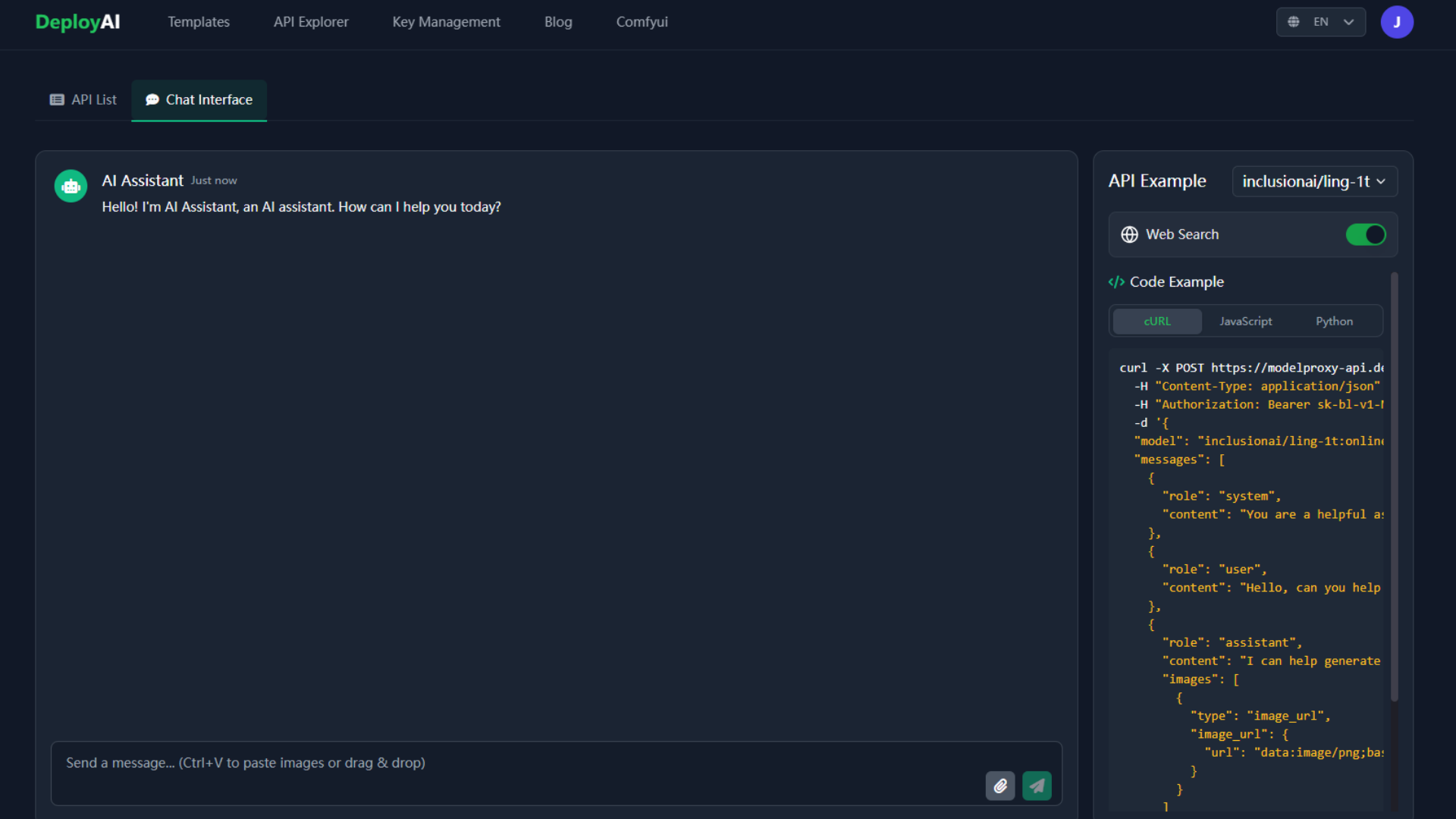 Currently, Ling-1T is also available on the DepolyAI official website.