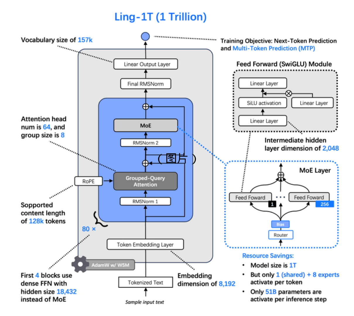 Here lies Ling-1T’s technical brilliance.It uses a “large parameter reserve + small parameter activation” mechanism.Think of it as having a gigantic brain (trillions of parameters), but only “activating” a small portion — around 10 billion — when solving a problem.Just like humans don’t use all brain cells at once, this makes it both smart and energy-efficient.