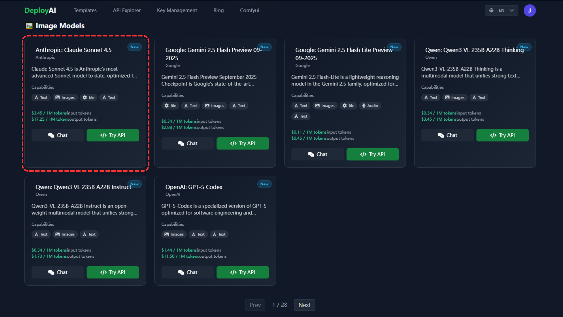 The Claude Sonnet 4.5 API is now available on DeployAI, with the pricing matching the official website. Users in China can directly access it by clicking the link below!