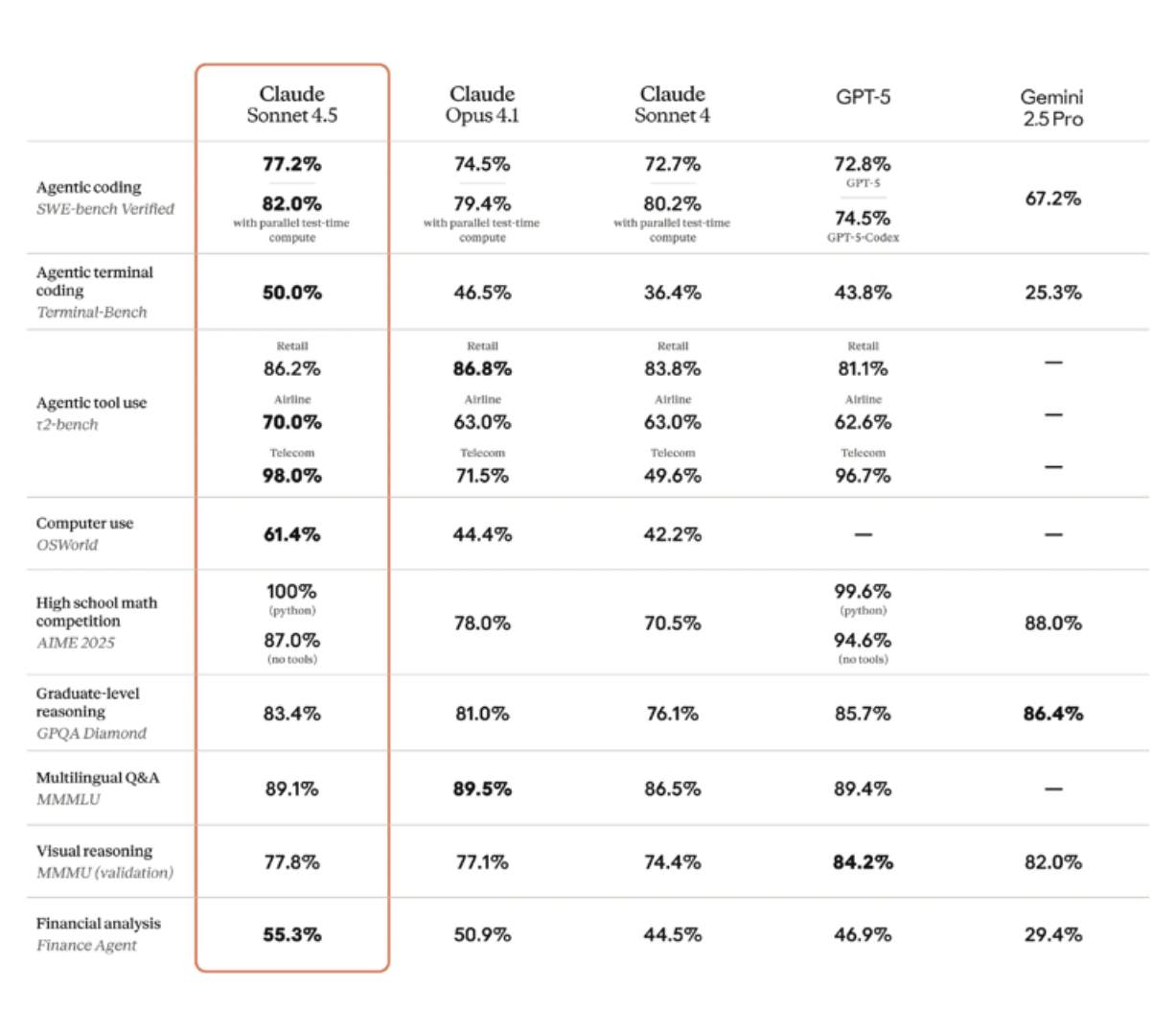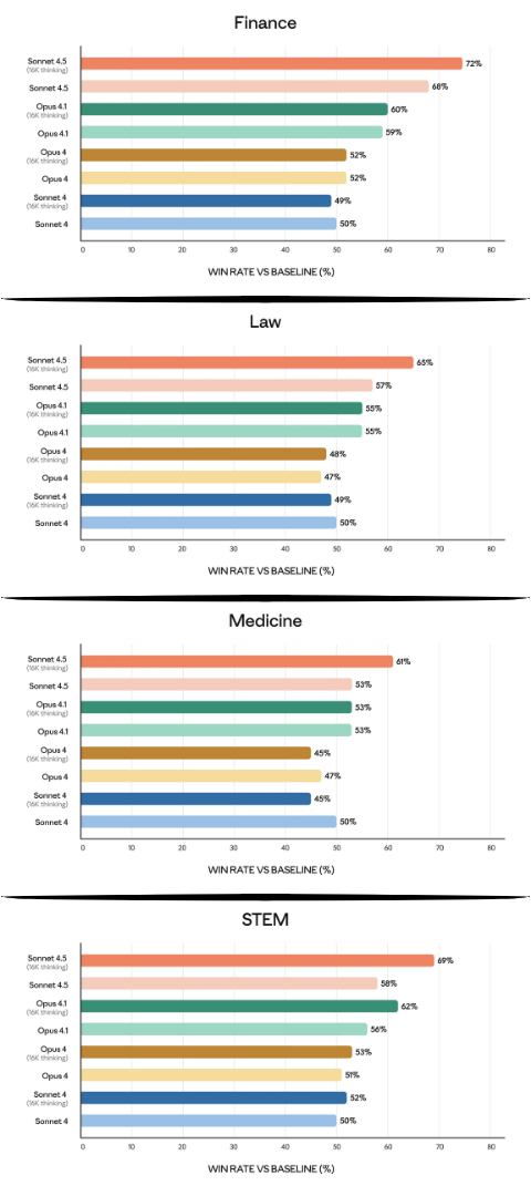 At the same time, Claude Sonnet 4.5 demonstrates exceptional domain knowledge and reasoning ability in fields such as finance, law, medicine, and STEM.