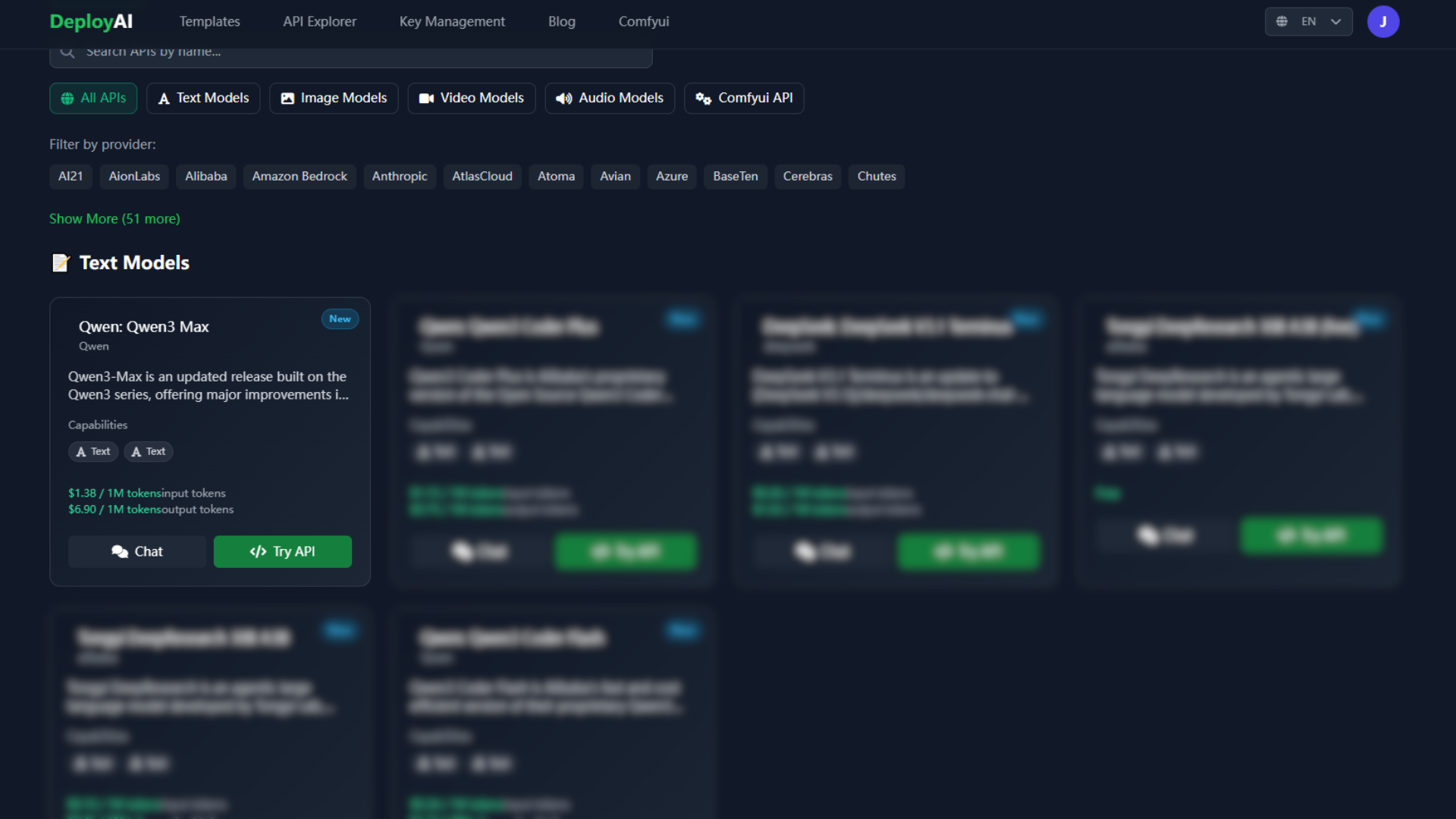 Qwen3-Max is now available on DepolyAI’s official website, where you can experience firsthand the charm of a trillion-parameter model.