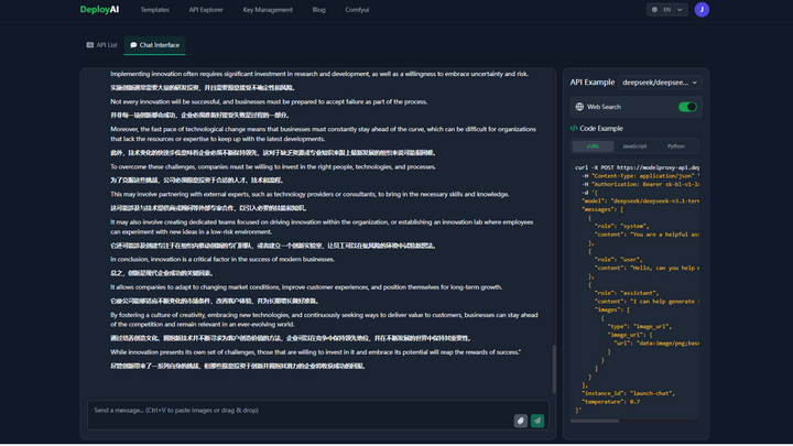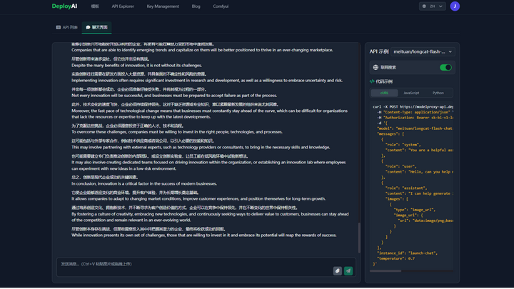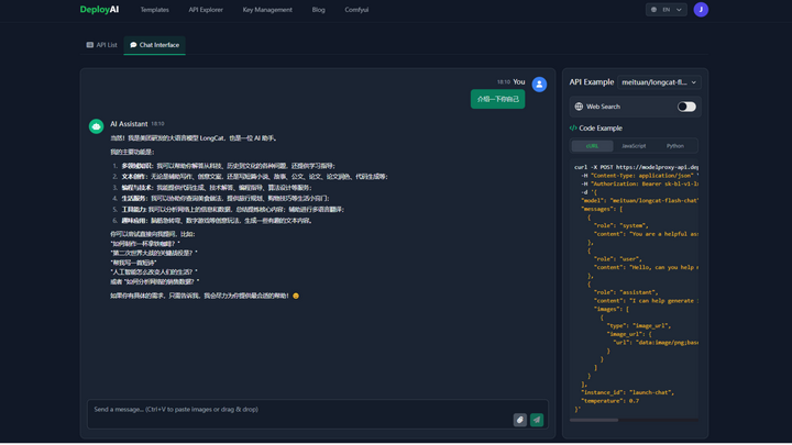 (以上图片、数据均来源于美团技术团队)目前模型已上线到Github和Hugging Face上,想要了解但又嫌本地部署麻烦的小伙伴,可以到DepolyAI的官网上体验LongCat Flash Chat的模型!